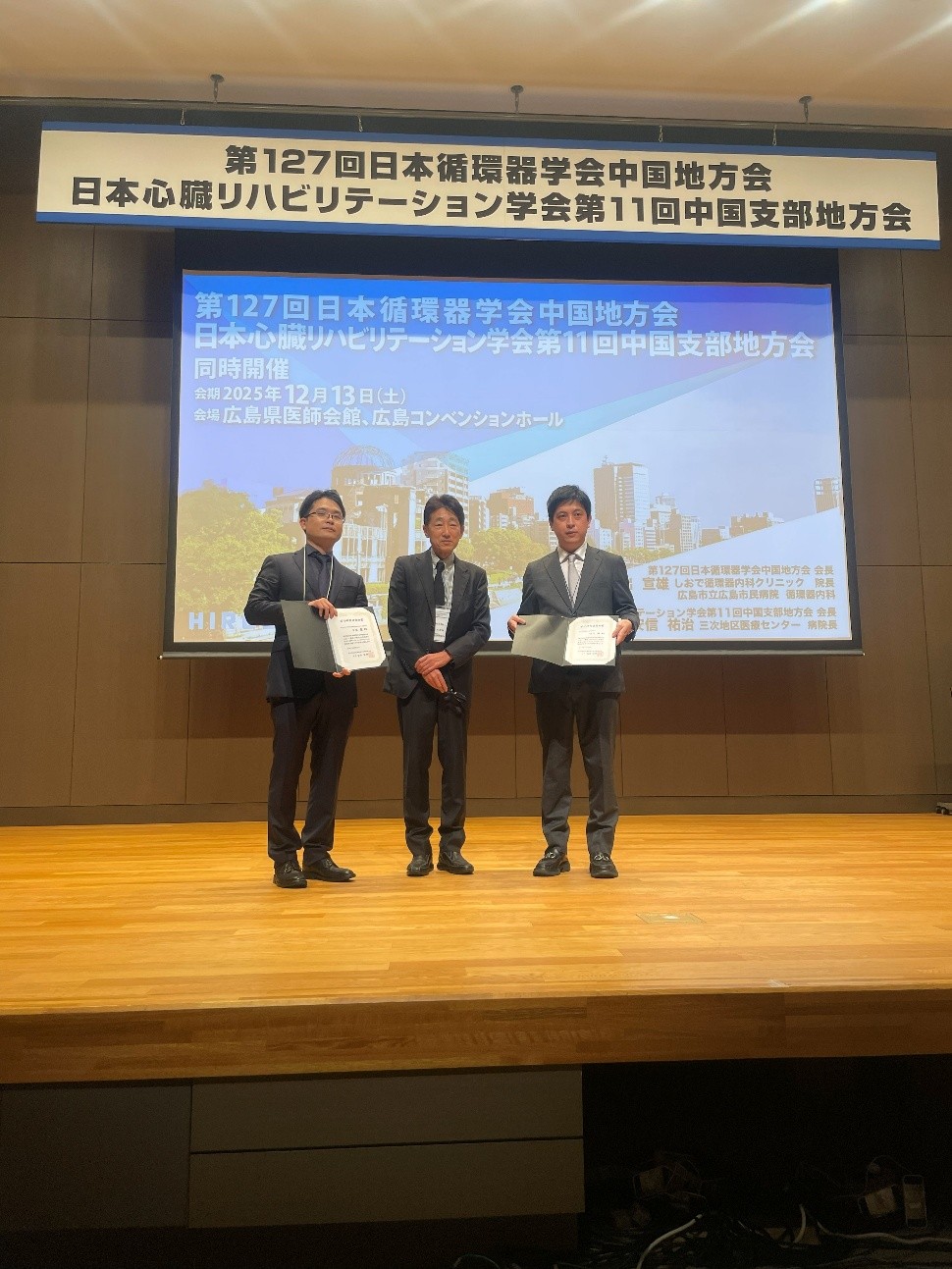 多屋慧先生が、第127回日本循環器学会中国地方会(2025/12/13, 広島)で若手研究奨励賞(YIA)を受賞しました。